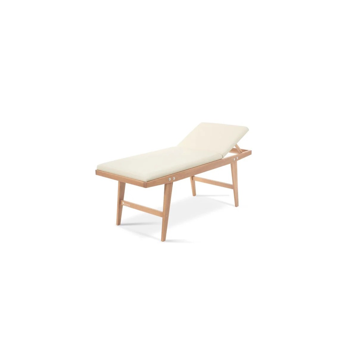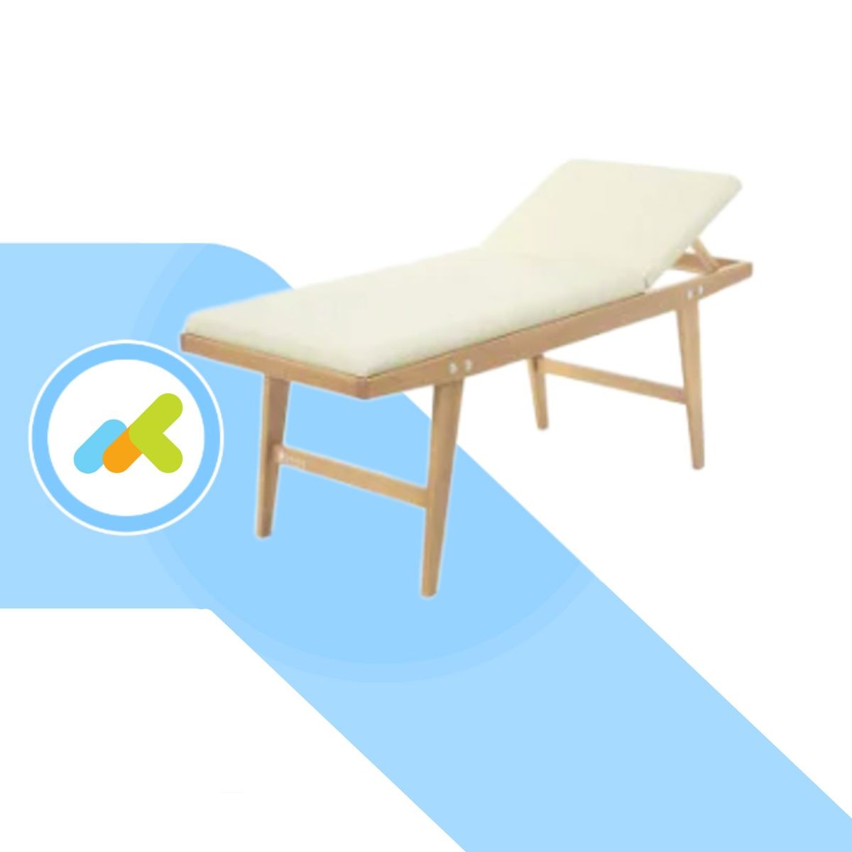 Lettino DENEB per trattamenti e visite mediche con schienale regolabile manualmente, struttura in faggio al naturale, imbottitura in poliuretano e rivestimento in similpelle lavabile e autoestinguente.