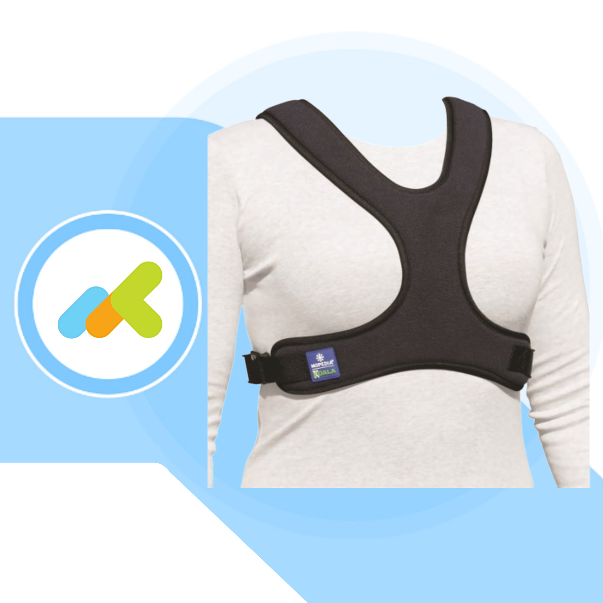 La cintura pettorale a corpetto a farfalla Koala è un dispositivo posturale progettato per evitare lo scivolamento in avanti e garantire il contenimento del busto di pazienti seduti su carrozzina, sedia comoda o seggiolone. Realizzata in tessuto imbottito anatomico, assicura massimo comfort e libertà di movimento, prevenendo pressioni sul seno. Dotata di nastri regolabili e chiusure a clip per un posizionamento rapido, sicuro e adattabile a ogni corporatura.