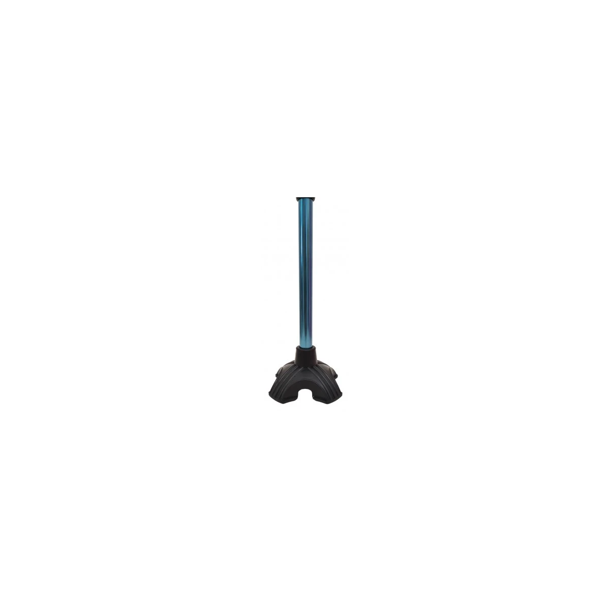 L’impugnatura morbida tipo derby, rivestita in gomma, assicura una presa salda e confortevole, riducendo l’affaticamento della mano. La base larga, dotata di quattro puntali in gomma antiscivolo, garantisce una superficie di appoggio sicura (12 x 12 cm) e permette al bastone di restare in posizione verticale senza supporto.