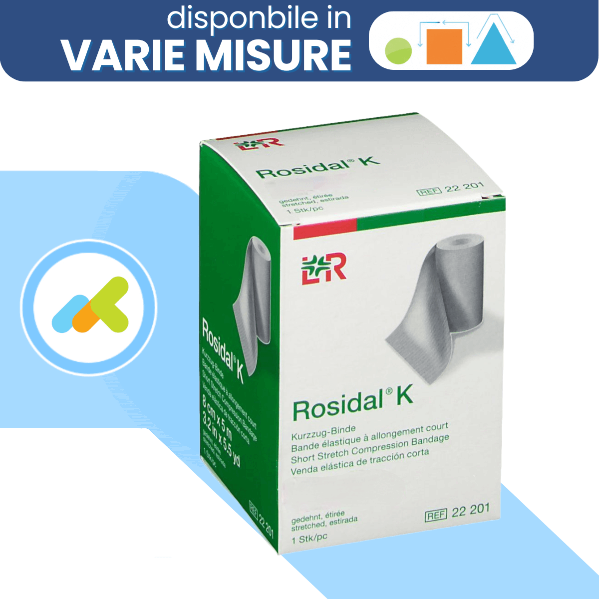 Per ottenere risultati terapeutici efficaci nel trattamento dei disturbi venosi e linfatici, è fondamentale utilizzare bendaggi che combinino estensibilità controllata ed elevata capacità compressiva. Rosidal K è una benda elastica realizzata in tessuto a compressione forte con allungamento limitato, caratteristica che la distingue dalle comuni bende compressive a lungo allungamento.