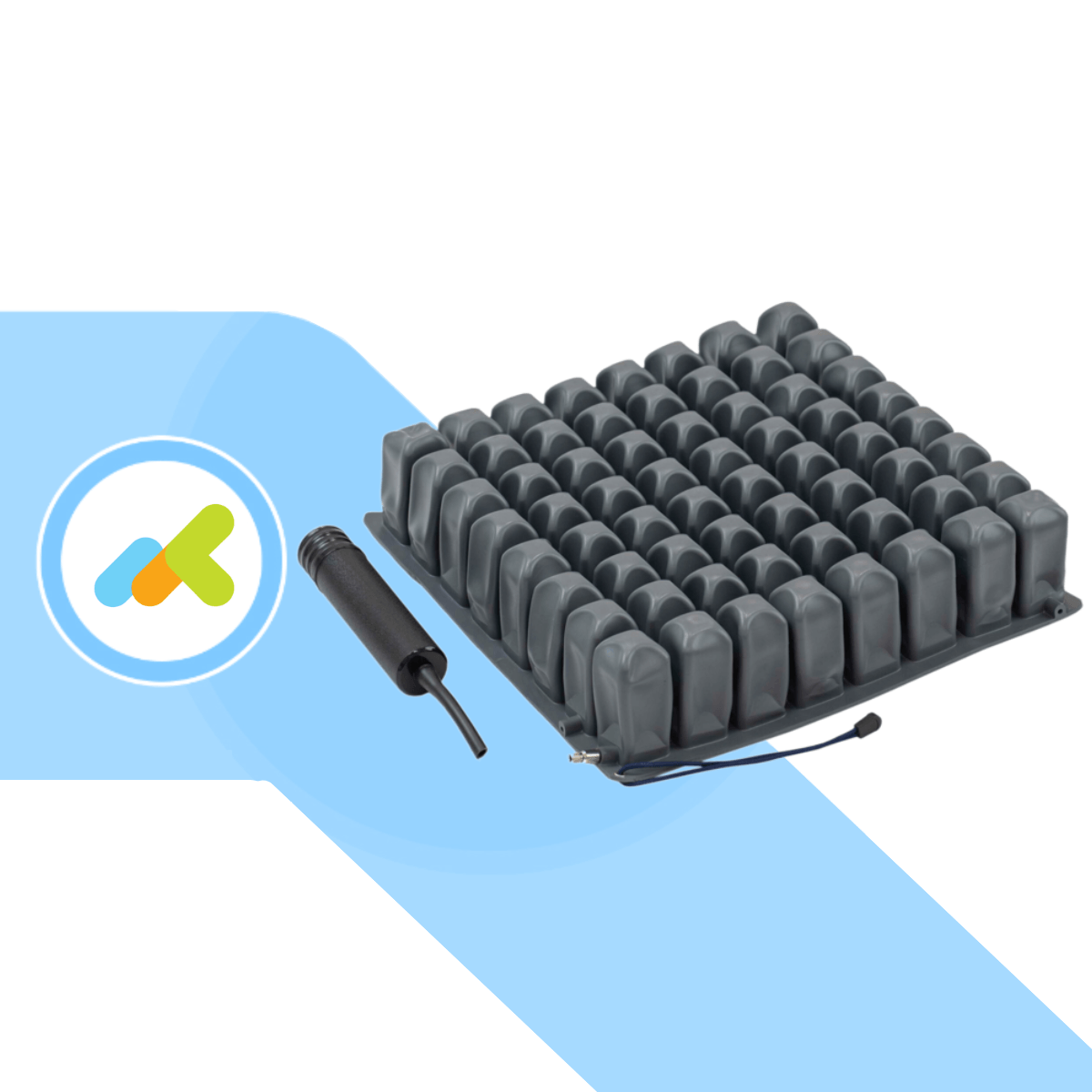 Il cuscino è realizzato in Neoprene impermeabile all'aria, materiale che garantisce il mantenimento di una pressione costante all'interno delle celle e una lunga durata nel tempo. È disponibile in altezza 6 cm o 10 cm per adattarsi alle diverse esigenze posturali.