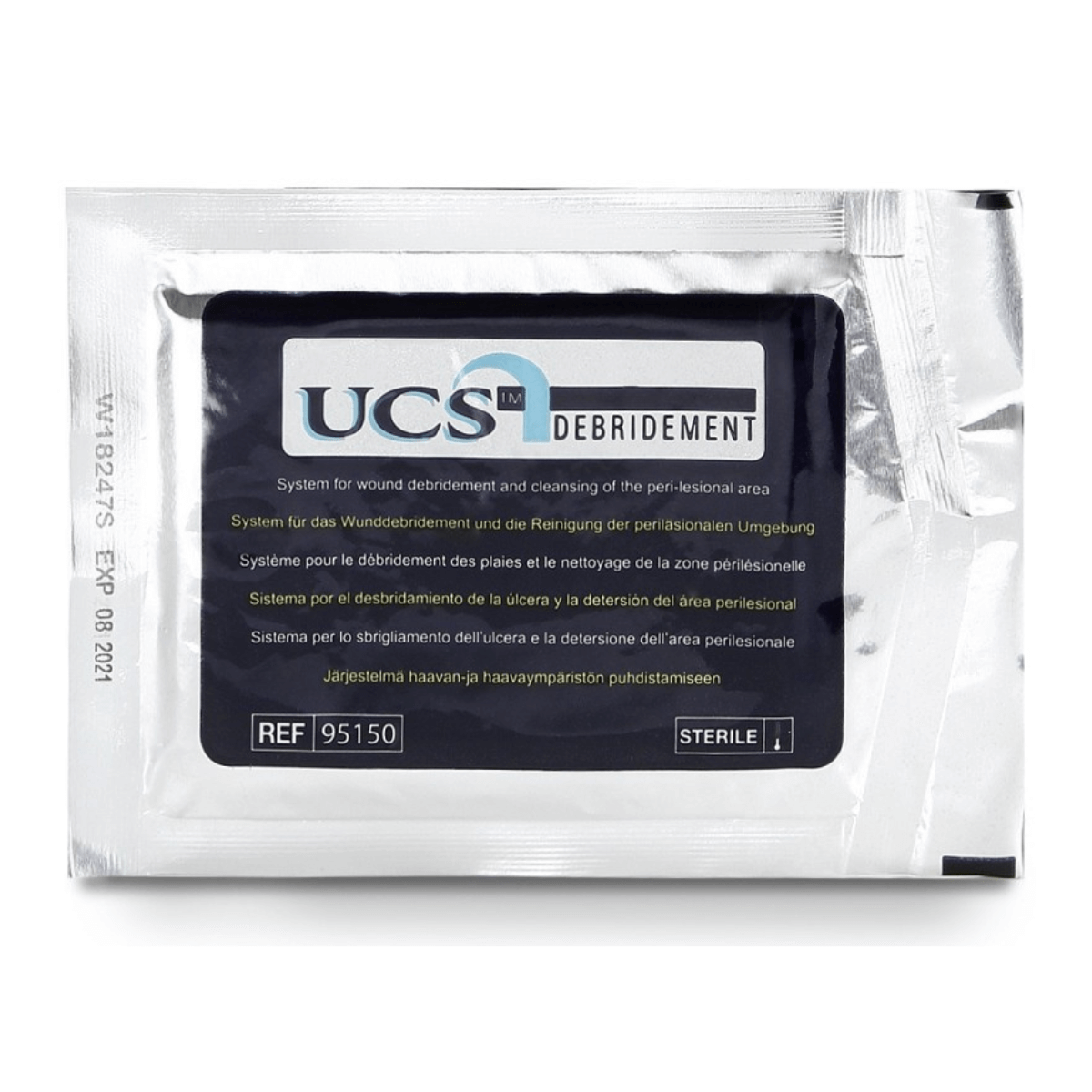UCS Debridement è una garza sterile monouso imbevuta con una soluzione specifica, progettata per lo sbrigliamento (rimozione del tessuto danneggiato) delle ferite, la pulizia efficace e l'idratazione profonda dell'area perilesionale e dei bordi di ferita. Questo dispositivo medico professionale consente la detersione completa dell'intero arto interessato, garantendo un trattamento atraumatico che rispetta i tessuti di nuova formazione. Utilizzato nei principali centri ospedalieri e universitari europei, UCS Debridement rappresenta una soluzione avanzata per il wound care e le medicazioni avanzate.