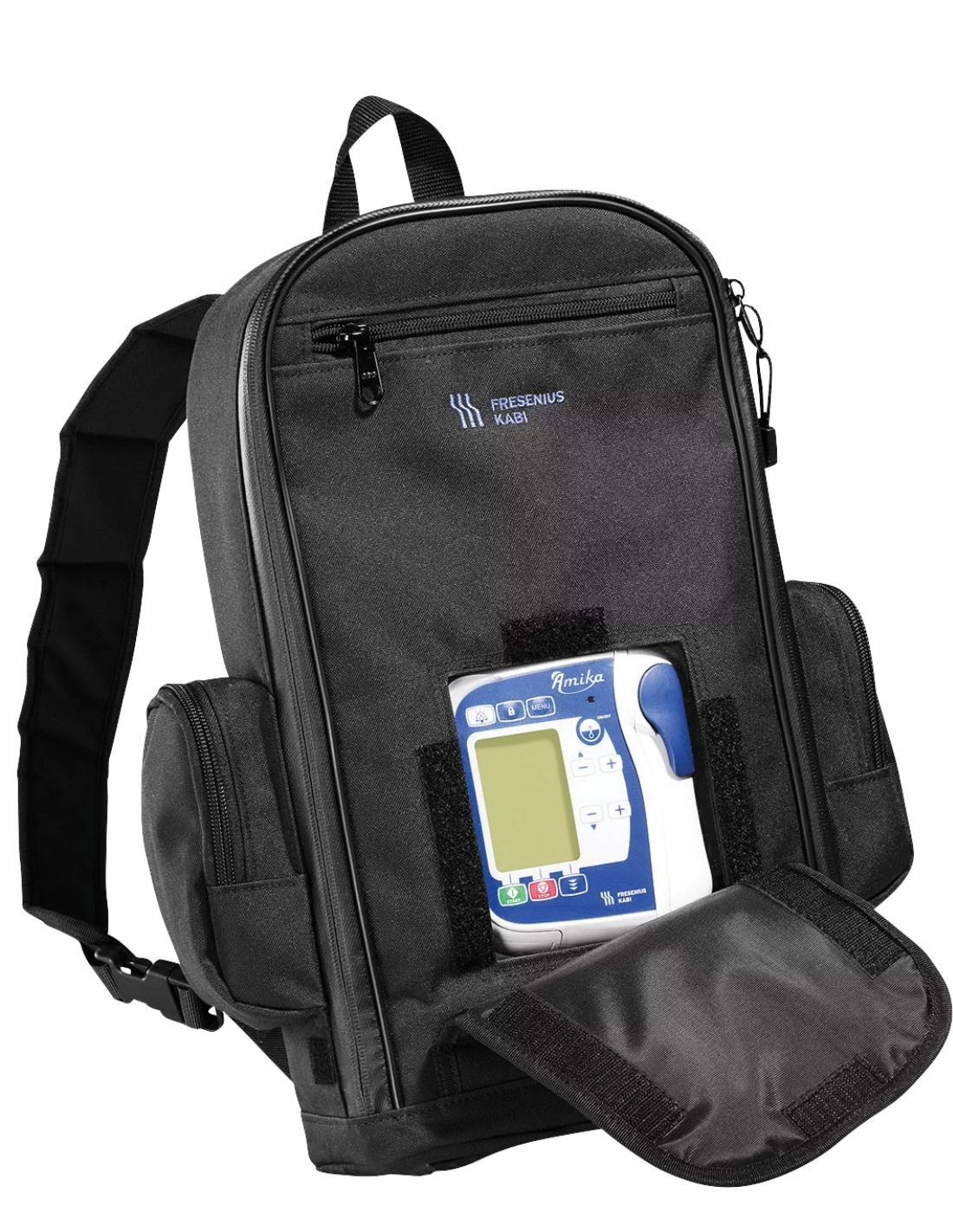 Lo zaino grande Amika® è stato progettato per supportare la nutrizione enterale mobile tramite la pompa enterale Amika. Ideale per adulti che necessitano di alimentazione assistita anche in movimento, unisce funzionalità, sicurezza e comfort.