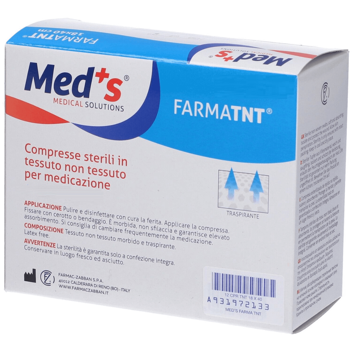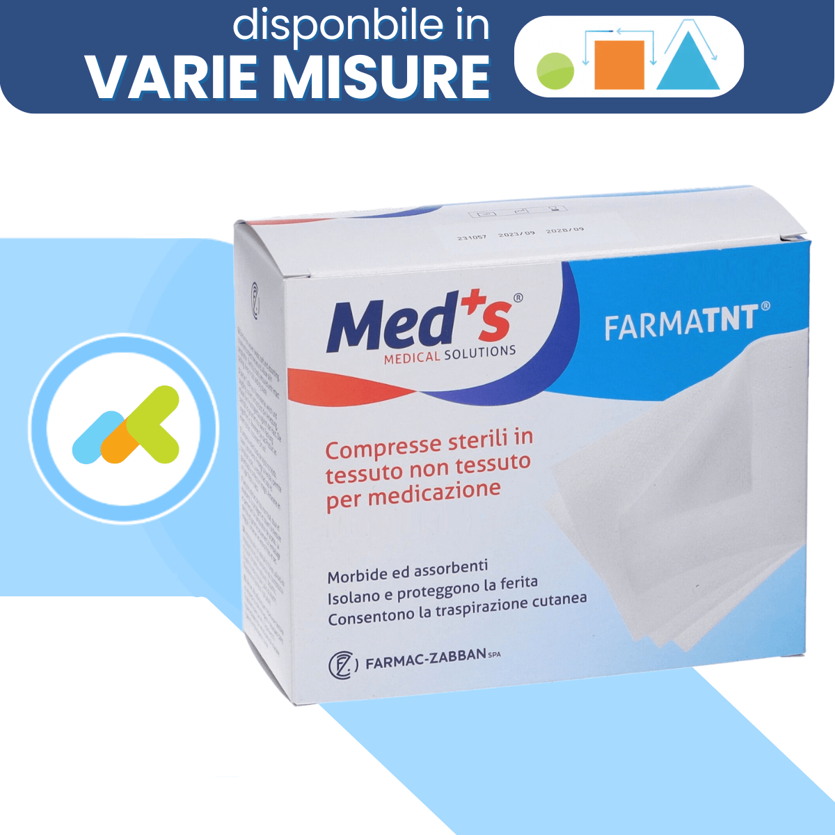 Le compresse Med's FarmaTnt sono confezionate in buste sterili singole, garantendo l'integrità microbiologica fino al momento dell'utilizzo. La configurazione prepiegata ottimizza lo spazio di stoccaggio e facilita l'applicazione immediata durante le procedure di medicazione in ambiente ospedaliero, ambulatoriale o domiciliare.