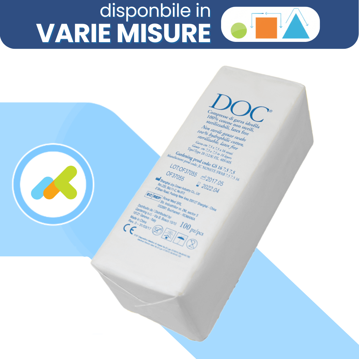 DOC Compresse di Garza in Puro Cotone Idrofilo: Elevata Capacità di Assorbimento