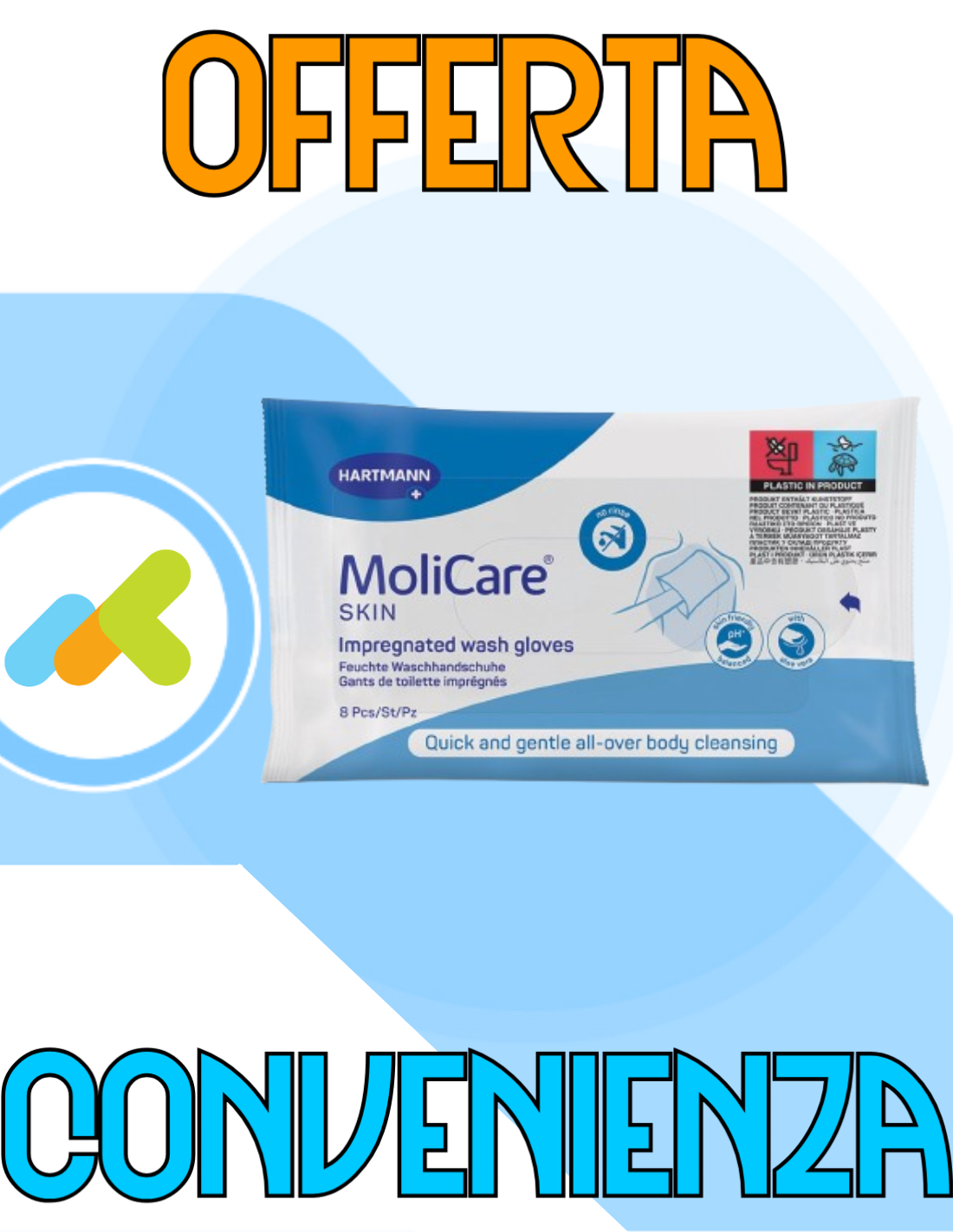 - Possono essere utilizzate più volte? No, le manopole MoliCare Skin sono progettate per un solo utilizzo. Dopo aver lavato una parte del corpo, è consigliabile smaltire la manopola per garantire la massima igiene.