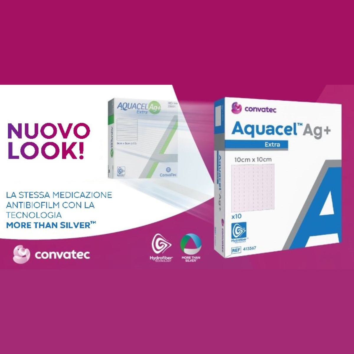 Aquacel Ag+ Extra™ di ConvaTec è una medicazione sterile antimicrobica con tecnologia Hydrofiber® e Ag+™, ideale per lesioni essudanti infette o a rischio di infezioni. Garantisce assorbimento ottimale, neutralizzazione del biofilm e comfort atraumatico.