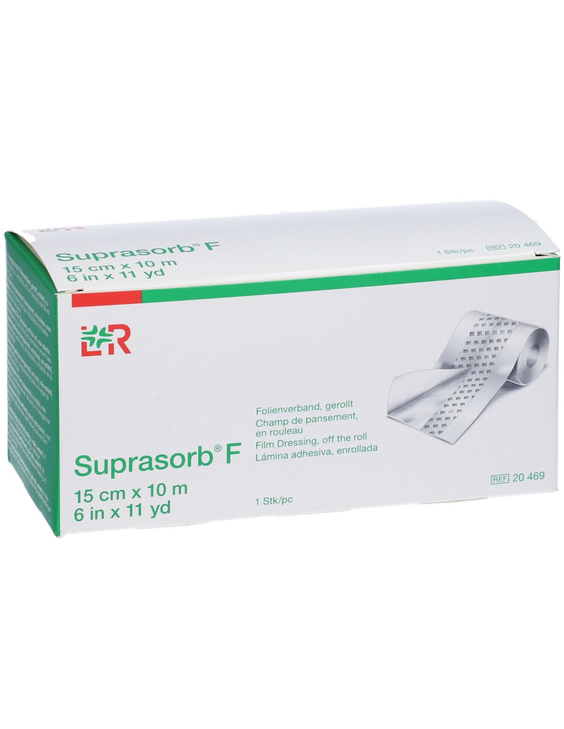 - Suprasorb F medicazione in film in rotolo è indicato per la profilassi di supporto delle aree cutanee a rischio di lesioni da decubito, per il fissaggio nella cura delle ferite e per il trattamento iniziale di piccole ferite superficiali.
