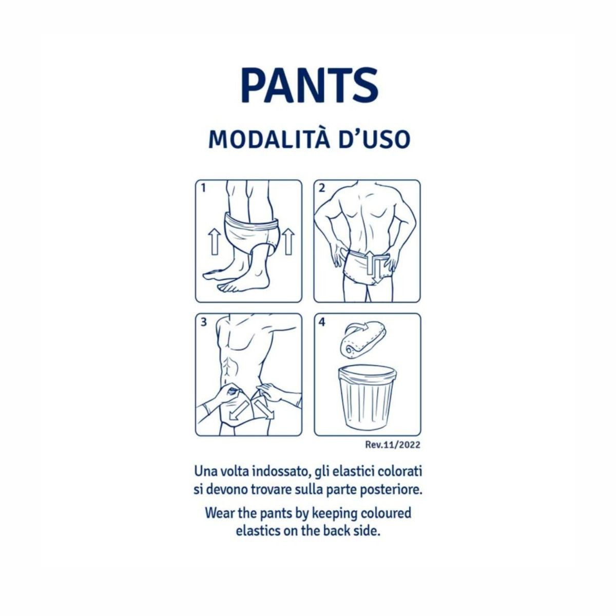 - È una mutandina assorbente monouso per adulti con incontinenza grave, realizzata con tecnologia Air Dry e doppio strato assorbente per protezione e comfort.