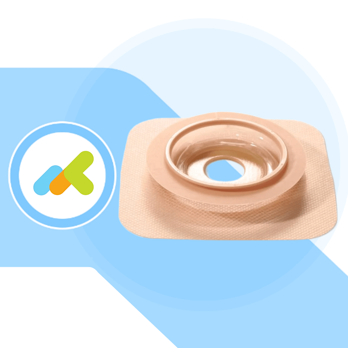 L'anello di supporto è circondato da un cerotto adesivo microporoso, rivestito da idrocolloide, garantendo aderenza ottimale anche su cute sensibile.