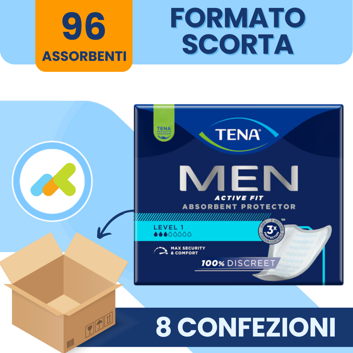 L'incontinenza urinaria leggera non deve essere un ostacolo alla vita attiva e alle relazioni sociali. TENA Men Active Fit Livello 1 offre una soluzione efficace, discreta e confortevole per gestire gocciolamenti e piccole perdite, permettendoti di concentrarti su ciò che ami fare senza preoccupazioni.