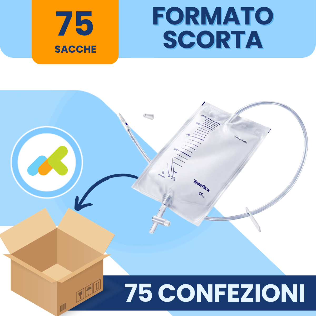 Vuoi RISPARMIARE sulle tue SACCHE URINA? Scegli la convenienza del BOX! Acquistando il box ricevi 75 confezioni per un totale di 75 sacche e ottieni subito uno SCONTO.